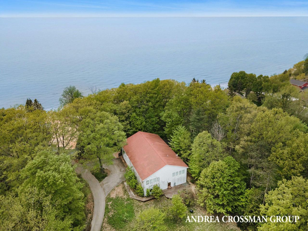 This expansive two-story building is nestled on 2+ picturesque, wooded acres with 100 feet of private Lake Michigan frontage. The main level includes a bedroom, two full baths, a full kitchen and living area, with a bonus portion being used for storage. The upper level is full of possibilities with about 2836 SqFt currently dedicated to storage. The 3000 SqFt unfinished lower level is utilized as workshop. With a low/medium bluff on Holland's north side, the true value lies in the expansive land itself. The home is being sold ''as is'' and occupancy is negotiable. This unique property has remained in the same family for decades and now is being offered as an exclusive chance to own your slice of paradise on Lake Michigan. Available for purchase is also the homes to the south, 5807 Lakeshore. Purchase both properties and own an incredible 210 feet of private Lake Michigan frontage with a fabulous beach.